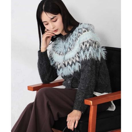 ・膨らみ感あるブークレ素材の求心柄カーディガン