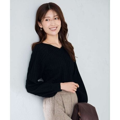 ・凹凸あるプリーツライクな編地が細見え効果&すっきり見えのニット