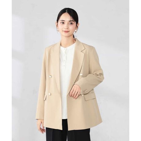 定番のダブルブレストジャケットは、ワンピース、パンツ、スカートも合わせやすい着丈で、カジュアルにもきれいめにも着こなせる1着です。