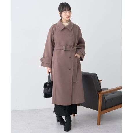 上質感あるしっかりとした仕立てでトラディショナルな雰囲気もあるロング丈コート。大きめのボタンやバックル付きベルトを加えたモードでスタイリッシュなデザインです。チンストラップ付きの襟元は、スタンドカラーやステンカラー、トレンチ風にと3WAYでアレンジが可能。シーズンムード漂う優しいカラーで着回しやすいおすすめのアイテムです。