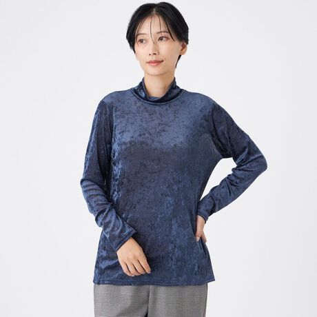 【マシンウォッシャブル】メッシュベロアハイネックプルオーバー