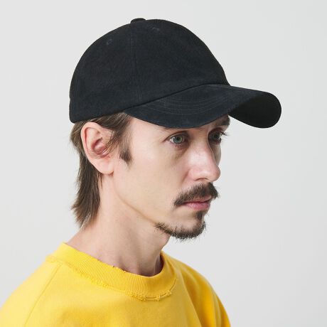 シンプルなベースボールキャップをスエード素材で仕立てた一品。