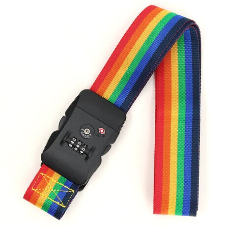 飛行機で預けた荷物、みんな同じような色や形で自分の荷物がわかりにくいこと、ありませんか?"スーツケースは仕事にも使うし家族共用なのであまり派手な色は選べない"、"万が一、預けている間に気圧の変化等で開いてしまったらどうしよう"。そんな時は、色柄バリエーション豊富なスーツケースベルトがおすすめです。目印としてはもちろん、鍵の故障等でスーツケースが開いてしまったときの荷物の飛び出しを防いだり、防犯効果も期待できます。TSAナンバーロック付きバックルを使用。着脱簡単でスーツケースに合わせて長さ調節が可能です。