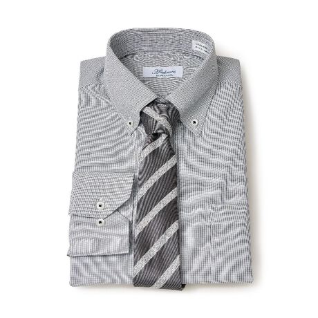 シーンを選ばずシーズンレスで着用しやすいボタンダウン、セミワイドの襟型を採用しています。