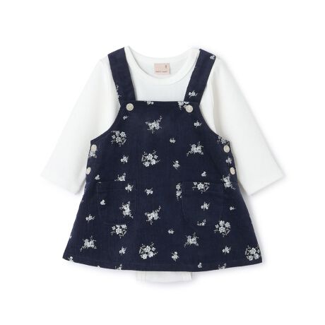 繊細な花柄に心惹かれるロンパースとジャンスカのセットアップです。