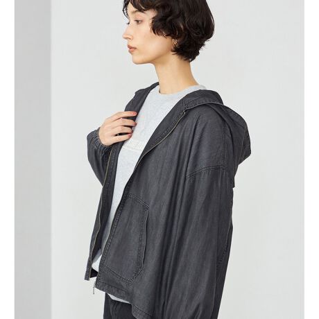 人気のシアーパーカーと同フィットを採用した、SOMETHINGらしいこだわりのデニムアウター。特徴的な前後差のある着丈は、フロントはすっきりと見せながら、バックは気になるヒップラインをしっかりとカバー。自然なスタイルアップ効果をもたらします。ラフに羽織るだけでこなれ感を演出し、秋口の軽アウターとして大活躍すること間違いなしの一着です。