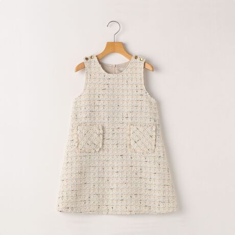 キラキラした上品なラメ糸を織り交ぜ、様々な糸を織り込んだツイード素材を使用したジャンパーワンピース。