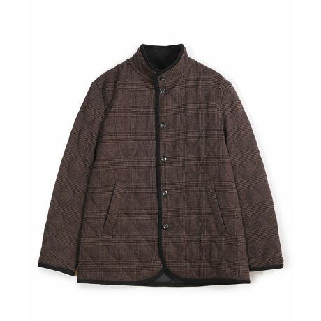 スタンドカラーですっきりと見せつつ風の侵入を防ぎ、季節の変わり目にも対応。ツイード素材の質感とダイヤ柄のモダンなディテールが融合し、大人の落ち着いた雰囲気と洗練された印象を併せ持つ一着です。
