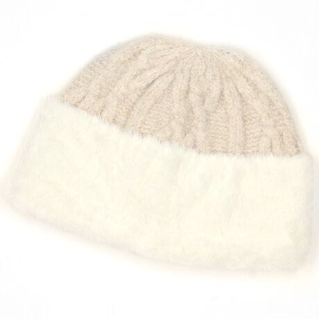 マンハッタンポーテージ ファー付きケーブル編みニット帽子