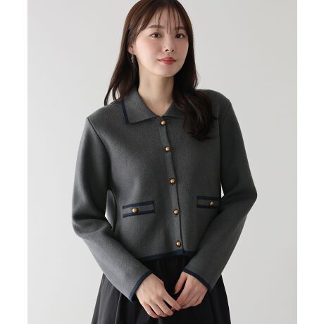 バイカラー×ポロ衿がトレンドライクなニットカーディガン。