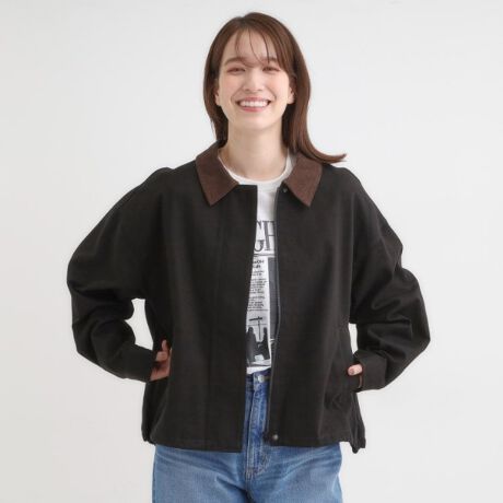 襟元はコーデュロイの異素材使いになっており、コーディネートのポイントになるデザインです。