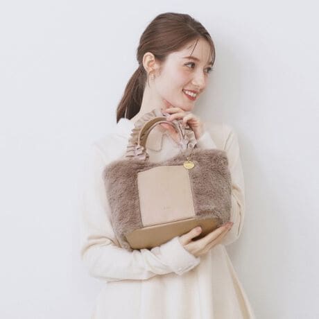 フェイクファーと合皮を組み合わせた持ち手がフリルデザインのトートバッグ
