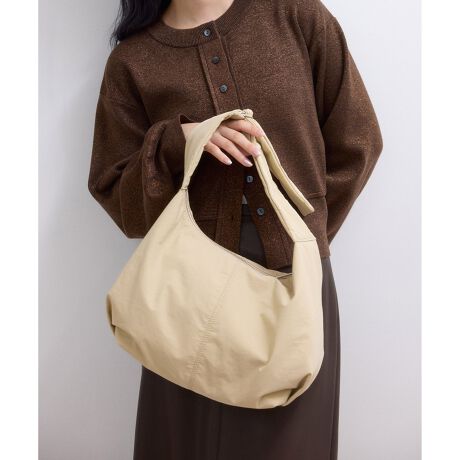 持つだけで少しモードな雰囲気に仕上がる、コロンとしたフォルムデザインがかわいいショルダーバッグ。