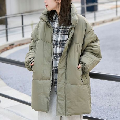 腰回りまでゆったり隠れるシルエットながら、着ぶくれしない中綿分量にこだわったバランスで体型カバーも叶えます。