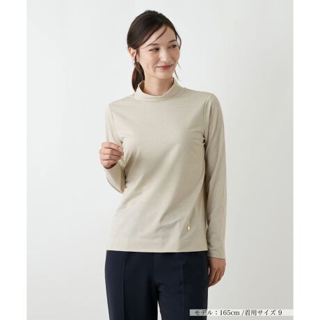 繊細なラメの煌めきが、顔周りを上品に彩るハイネックカットソー。伸縮性のある生地でストレスフリーな着心地を実感できます。シンプルなデザインでありながら、一枚で着て華やかなのはもちろん、ジャケットやコートのインナーとして首元から覗かせれば着こなしがぐっとリッチな印象に。裾にあしらったメタルプレートも、さりげないアクセントを添えています。オンオフ問わず着回せる注目のトップスです。