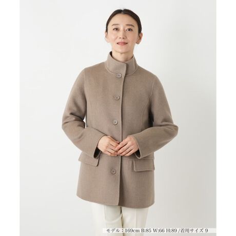 上質なカシミヤを使用した、スタンドカラーのショートコート。端正なフォルムの襟が大人の女性らしい洗練されたスマートな佇まいを演出。一重仕立てによる軽やかな着心地ながら、厚手の生地が冬の寒さからしっかりと守ります。裏側はすべてチェック柄になっており、袖を折り返したり、脱いだ時に覗く柄がお洒落心をくすぐります。すっきりとしたシルエットで、上品な冬のスタイルを叶える一着です。