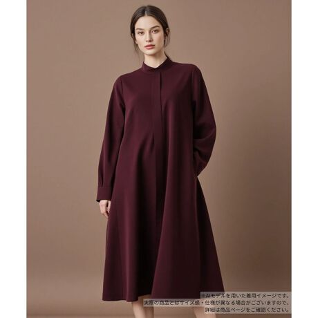 凛とした気品が漂う、ミニマルで洗練された趣のバンドカラーワンピース。フロントは比翼仕立てですっきりとさせており、中央のタックから裾へ流れるAラインが美しいドレープを生み出します。肌当たりのよいしなやかな素材感も相俟って、女性らしい柔らかな表情を演出。一枚で旬のコーディネートが完成し、アクセサリー次第でお呼ばれの席にも対応可能。これからの季節のワードローブに加えたい上品な佇まいのアイテムです。バックファスナーにより開閉が可能。