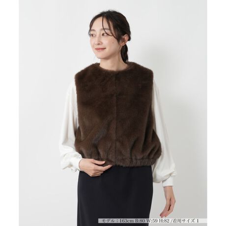 いつもの着こなしにプラスするだけで旬なスタイルに仕上がる、「PASSIONE」のフェイクファーベスト。高密度で滑らかな肌触りの上質なフェイクファーを贅沢に使用し、見た目にも暖かくリッチな雰囲気を演出します。裾にゴムを入れた丸みのあるシルエットも特徴で、コンパクトな着丈は様々なボトムスとバランス良好。フロントはすっきりとしたノーカラーデザインとホック仕様で、合わせるインナーを選ばないのも嬉しいポイント。