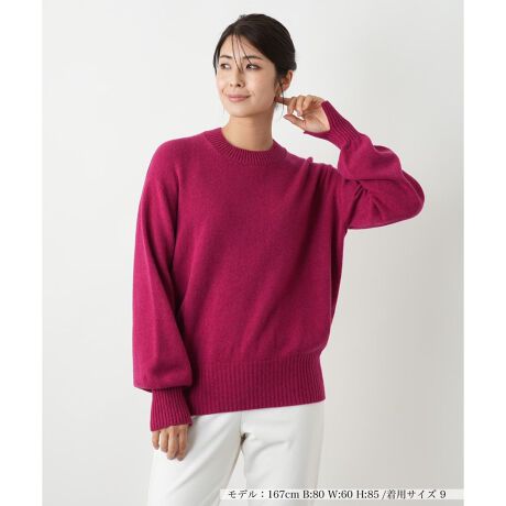 国内老舗メーカー深喜毛織の糸で編み上げた、ホールガーメント製法のクルーネックセーターです。縫い目のない仕立てが生み出す快適な着心地が特徴です。超極細ウールを使用し、卓越した紡績技術により、ウール100%でありながらカシミヤのようなふっくらとした柔らかさと優しい風合いを実現しました。パフスリーブと袖口のスリットがデザインのアクセント。ゆったりとした着心地と上質な肌触りで、お客様の日常を心地よく満たします。