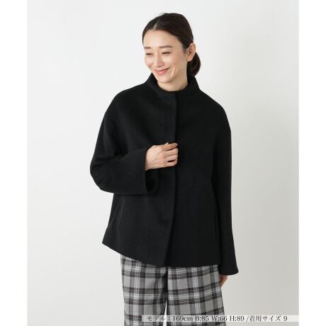 ミニマルなデザインが洗練された印象を与える、「CINZIA ROCCA」のハイネックショートコート。立ち上がりのあるネックラインが顔周りを上品に見せ、モードな雰囲気を演出。フロントはスナップボタンを隠した比翼仕立てで、すっきりとした美しさを追求しました。厚手のしっかりとした生地感で本格的なアウターとして活躍。裏地付きで着心地も滑らかです。パンツにもスカートにも合わせやすい丈感で、大人の女性らしい着こなしを叶えます。
