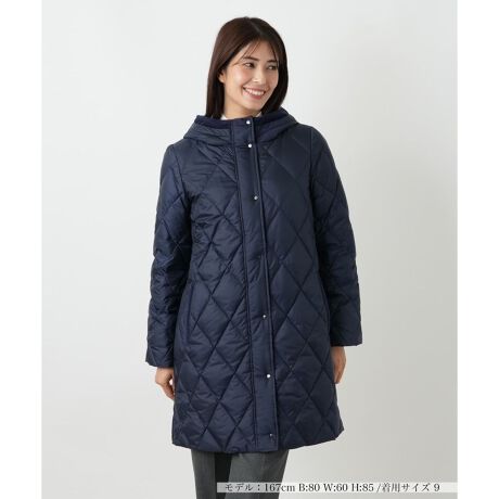 メインアウターとして活躍する、軽くて暖かいダイヤキルトのフーデッドダウンコート。保温性に優れたダウン&フェザーを採用し、真冬の寒さからもしっかりと身を守ります。フロントはファスナーとスナップボタンの二重構造、さらに袖口の内側にはゴムを配し、冷たい空気の侵入を防ぐ工夫も。上品なダイヤ柄のキルティングはダウンコートながらも着膨れせず、すっきりとした印象に見せてくれます。通勤から休日のお出かけまでシーンを選ばず、毎日に寄り添ってくれる頼もしい一着です。