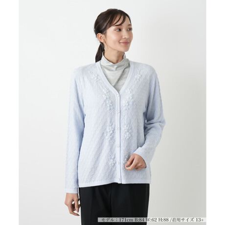 イタリアのニットファクトリーメーカー「CORSINI & PROTI」による、洗練されたカーディガン。イタリア「ゼニアバルファ」社の毛を100%使用した12ゲージの編地は、幾何学模様のような組織が特徴です。手作業で施された花柄の刺繍と輝きのある装飾、そしてクリスタル調ボタンが、繊細で華やかな印象を一層引き立てます。ニットの編地はもちろん、ハンドメイドならではの非常に繊細な刺繍が他にない物作りをしています。深みのあるVネックデザインは、首元を美しく見せ、様々なインナーとのレイヤードをお楽しみいただけます。大人の女性の日常を豊かに彩る、芸術性と快適さを兼ね備えた一枚です。