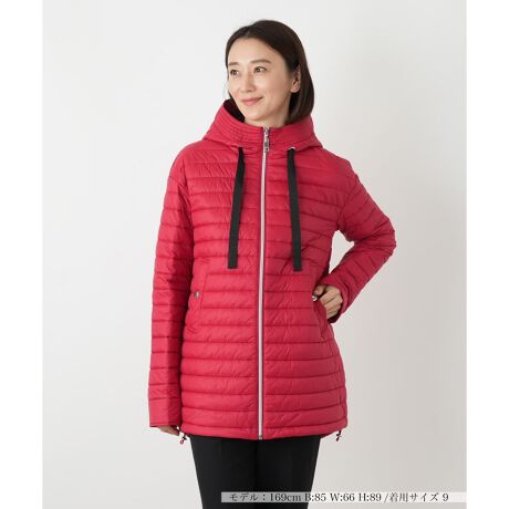 オンオフ問わずフレキシブルに着用できる、中わた入りのキルティングフーデッドコート。ボリュームを抑えた横方向のキルティングがすっきりとした印象を与えます。ウエストは後ろ側のドローコード、裾はサイドのドローコードで絞ることができ、お好みでアレンジしてメリハリのあるシルエットに調整が可能。収納は便利なサイドポケットに加え、内ポケットも備えています。やや厚手の生地感で晩秋から初冬のアウターとして活躍する一着です。