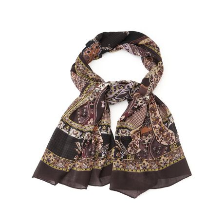 カシミヤをブレンドした極上の肌触りと、深みのあるペイズリー柄が魅力的な大判ストール。シックなカラーを基調に、ペイズリー柄や幾何学模様を組み合わせたクラシカルなデザインは、纏うだけでコーディネートを格上げしてくれます。薄手ながらも暖かさがあり、季節の変わり目の温度調節にも最適です。巻くのはもちろん、肩からさっと羽織ったりとアレンジも自在。シンプルな装いに華やかさを添える、大人のためのアイテムです。