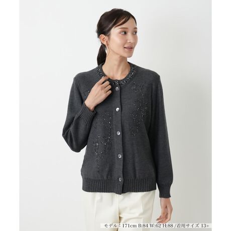 イタリアのニットファクトリーメーカー「CORSINI & PROTI」による、上質で華やかな前あきカーディガン。イタリア「ゼニアバルファ」社の上質な毛を主体とした糸で編み上げた7ゲージの編地は、柔らかな肌触りです。身頃にはハンドメイドの繊細な花柄刺繍が、襟には輝きのある装飾が丁寧に施され、上品な光沢感をプラス。天然の白蝶貝ボタンが、細部にまでこだわりを感じさせるアクセントです。ニットの編地はもちろん、ハンドメイドならではの非常に繊細な刺繍が他にない物作りをしています。羽織りとしてはもちろん、前を閉めてトップスのように着こなすのもおすすめです。大人の女性の日常を豊かに彩る、リュクスな一枚です。