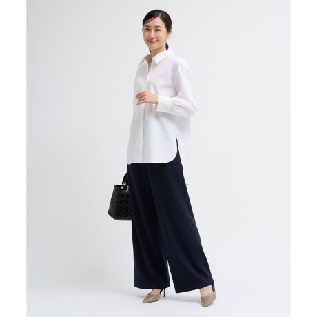 シワになりにくい上質な風合いと、ご自宅で手洗いできるウォッシャブル機能が嬉しいシャツブラウス。襟の形、カフスの長さ、長めの丈のシルエットがビジネスからカジュアルまで幅広く活躍します。重ね着、一枚着など長く幅広く愛用できる一着です。※商品の色味は、撮影場所や光のあたり具合、お客様のお使いの機器により色味が違って見える場合がございます。予めご了承ください。