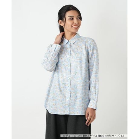 しなやかな肌触りのタナローンコットンで仕立てた「LIBERTY」プリントシャツ。薄く軽やかな着心地が魅力です。パリの街を自転車に乗った少女が巡る、遊び心のあるモチーフが描かれ、オルセー美術館の下に入ったレリアンオリジナルロゴがさりげないポイント。ご自宅で手洗いできるウォッシャブル仕様で、日常のお手入れも簡単。一枚で着ても、ジャケットやカーディガンのインナーとしても上品に映え、秋のコーディネートに彩りを添える一枚です。
