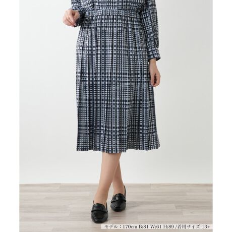 洗練されたチェック柄のプリーツスカートです。プリーツ加工が施されており、動くたびに優雅に揺れるシルエットが魅力。セットアップ対応も可能で、上品な着こなしを演出します。