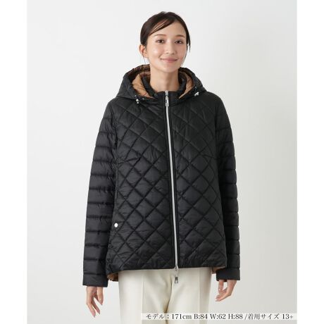 軽やかな着心地のキルティングジャケットは、ひし形のステッチがクラシックな印象を与えます。フード付きのデザインがカジュアルながらも、上品な素材感が洗練されたスタイルを演出。ジップアップ仕様で着脱しやすく、フード裏からのぞく配色がさりげないアクセントになっています。裾は前後差のあるデザインで、ヒップラインをカバーしつつ動きやすさも確保。季節の変わり目の羽織りとしてはもちろん、デイリーユースからアクティブなシーンまで、幅広く活躍するアイテムです。