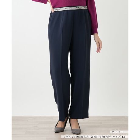 なめらかなトリアセテートとポリエステルの二重織り素材を使用したパンツ。センタープレス入りで足のラインがすっきり見えるストレートシルエットが特徴です。知的で品のある印象を与え、幅広いシーンで活躍します。ウエストにはROCHASのロゴ入り平ゴムを使用することで、伸縮性があり、快適な履き心地。長い季節お楽しみいただける汎用性の高い一本です。
