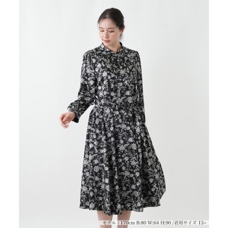 イタリア製生地「OFFICINA(オフィチーナ)」を使用した、繊細なモノトーンフラワーのプリントが美しいワンピース。ポリエステルツイルの微光沢素材が、上品な印象を醸し出します。ビブフロントにピンタックを施した繊細なデザインが特徴で、洗練された大人の女性のエレガンスを演出。ウエストにパネルを入れることで、ベルトなしでもすっきりとスタイルアップが叶います。長袖とスタンドカラーが品格を添え、アンダーワンピースも付属しております。ご自宅で手洗いできるウォッシャブル仕様で、日常のお手入れも簡単です。特別な日のお出かけはもちろん、普段の装いを格上げする一枚としてご活用いただけます。
