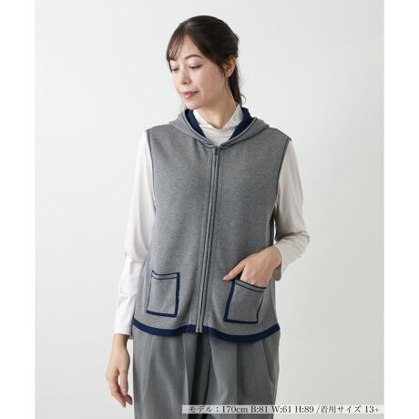 このフーデッドベストは、異なる表情を楽しめるリバーシブルデザインが魅力です。ジップアップ仕様で着脱しやすく、フード付きのデザインがスポーティーな印象をプラス。肌寒い日のレイヤードスタイルに最適な一枚です。リバーシブルなので、その日の気分やコーディネートに合わせてアレンジが楽しめるのも嬉しいポイントです。