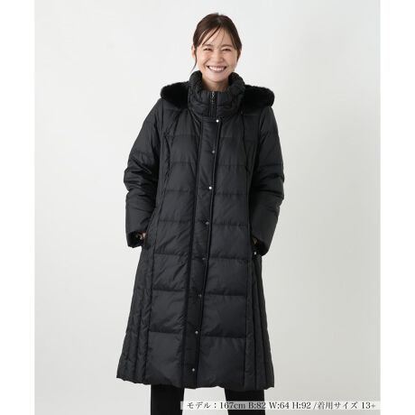 真冬の寒さにも対応する、エレガントなフーデッドダウンコート。フードは取り外し可能で、シーンに合わせてシンプルなスタンドカラースタイルも楽しめる2WAY仕様。サイドの切り替えがダウン特有の着膨れを抑え、すっきりと美しいAラインシルエットを実現します。フロントはファスナーとスナップボタンの二重構造、袖口には風の侵入を防ぐゴムを内蔵しているので防寒対策も万全です。