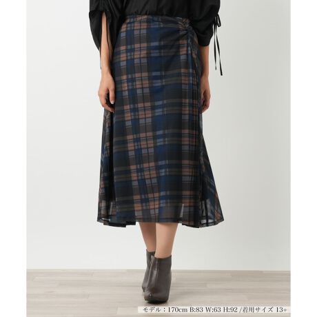 表情豊かなチェック柄のパワーネット素材を使用した、個性的なスカート。前後差をつけたアシンメトリーなデザインは、歩くたびに優雅な動きを演出し、洗練された大人のスタイルを叶えます。裏地付きで透け感を気にせず、快適な穿き心地です。ウエストはゴム仕様で、優しいフィット感。ご自宅で手洗いできるウォッシャブル仕様で、日常のお手入れも簡単。同シリーズのインナーと合わせれば、統一感のあるコーディネートが完成します。秋のお出かけや、おしゃれを楽しみたい日にぴったりの一枚です。