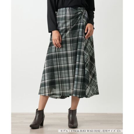 表情豊かなチェック柄のパワーネット素材を使用した、個性的なスカート。前後差をつけたアシンメトリーなデザインは、歩くたびに優雅な動きを演出し、洗練された大人のスタイルを叶えます。裏地付きで透け感を気にせず、快適な穿き心地です。ウエストはゴム仕様で、優しいフィット感。ご自宅で手洗いできるウォッシャブル仕様で、日常のお手入れも簡単。同シリーズのインナーと合わせれば、統一感のあるコーディネートが完成します。秋のお出かけや、おしゃれを楽しみたい日にぴったりの一枚です。
