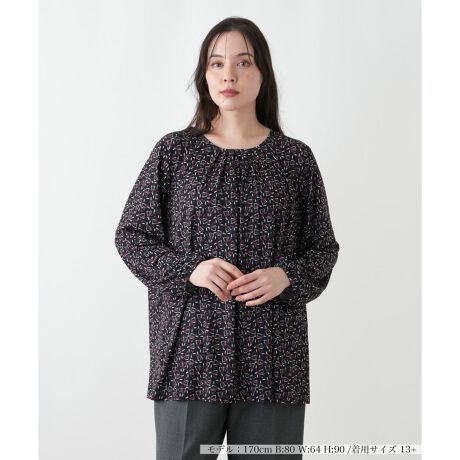 イタリア製生地「ARGENTI(アルジェンティ)」を使用した、光沢があり肌触りの良いジャージー素材の長袖カットソー。濃紺をベースに、赤が効いた鐙(あぶみ)や馬具をモチーフにしたグラフィカルなプリントが目を引きます。派手になりすぎず、洗練された印象を与えるデザインに仕上がりました。ラウンドネックはデコルテラインを美しく見せ、どのようなジャケットやカーディガンとも好相性。ご自宅で手洗いできるウォッシャブル仕様で、日常のお手入れも簡単。一枚で着ても、インナーとしても上品に映える、大人の女性のための着回し力の高いアイテムです。