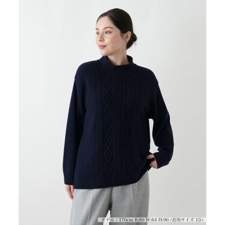 深喜毛織が手がける、繊細な編地デザインが美しいハイネックセーター。なめらかな肌触りと柔らかな風合いが魅力の素材で仕立てられ、肌寒い季節に心地よい暖かさを提供します。前身頃に施された編地デザインが、シンプルながらも洗練された印象を与え、一枚で着ても様になります。ハイネックデザインは首元を優しく包み込み、上品な雰囲気を演出。どんなボトムスとも合わせやすく、ジャケットやカーディガンのインナーとしても活躍する、着回し力の高い一枚です。大人の女性の日常を豊かに彩る、温もりとエレガンスを兼ね備えたアイテムです。
