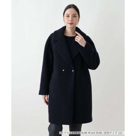 暖かみのあるブークレ素材が特徴の、ミドル丈コートです。ふっくらとした表面感と、テーラードカラーがエレガントな印象を与えます。ゆったりとしたオーバーサイズシルエットは、厚手のニットの上にも羽織りやすく、リラックスした着心地を提供。フロントはダブルブレストデザインで、シンプルなコーディネートにクラシカルなアクセントをプラスします。両サイドには、実用的なポケットが配されており、機能性も兼ね備えています。デイリーユースから、きれいめなスタイルまで、幅広いシーンで活躍する一枚です。