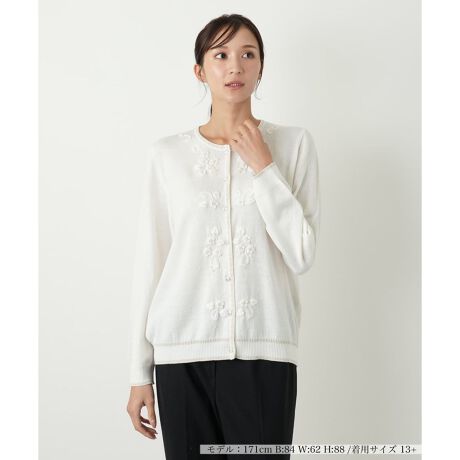 イタリアのニットファクトリーメーカー「CORSINI & PROTI」が手がける、上質で華やかなカーディガン。イタリア「ゼニアバルファ」社の良質な糸で編み上げた12ゲージの天竺ベースに、小さなクロスステッチが施されています。手作業で丁寧に花柄の刺繍と輝きのある装飾があしらわれ、CORSINI & PROTIならではの繊細な美しさが際立つ一着です。心地よい肌触りと、細部にまでこだわり抜かれたクラフトマンシップが融合した、大人の女性にふさわしい逸品。秋の装いを彩る主役として、特別なスタイルを演出いたします。