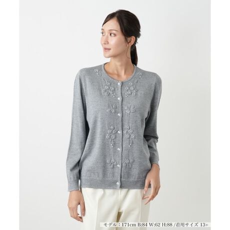 イタリアのニットファクトリーメーカー「CORSINI & PROTI」が手がける、上質で華やかなカーディガン。イタリア「ゼニアバルファ」社の良質な糸で編み上げた12ゲージの天竺ベースに、小さなクロスステッチが施されています。手作業で丁寧に花柄の刺繍と輝きのある装飾があしらわれ、CORSINI & PROTIならではの繊細な美しさが際立つ一着です。心地よい肌触りと、細部にまでこだわり抜かれたクラフトマンシップが融合した、大人の女性にふさわしい逸品。秋の装いを彩る主役として、特別なスタイルを演出いたします。