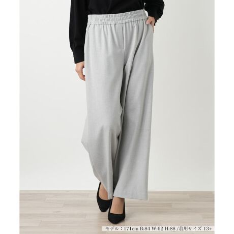 伸縮性のある素材で仕立てた、快適な履き心地のワイドパンツです。ウエストゴム仕様でリラックス感がありながらも、きれいなシルエットが上品な印象。秋のコーディネートに活躍する一枚です。