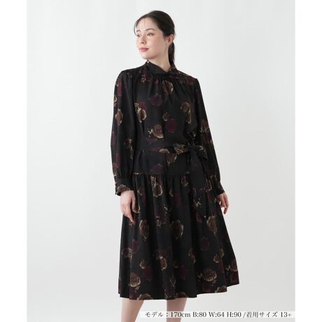イタリア製生地「ERICA(エリカ)」を使用した、美しいローズプリントのワンピース。ウインターガーデンをイメージしたエレガントな柄が、華やかな印象を演出いたします。ポリエステル素材なのでしわになりにくく、美しいシルエットを保ちます。長袖とスタンドカラーが品格を添え、共布のベルトが付属しており、ウエストマークすることでスタイルアップも叶います。アンダーワンピースも付属しており、安心してご着用いただけます。ご自宅で手洗いできるウォッシャブル仕様で、日常のお手入れも簡単。特別な日のお出かけはもちろん、普段の装いを格上げする一枚として、大人の女性のエレガンスを演出いたします。