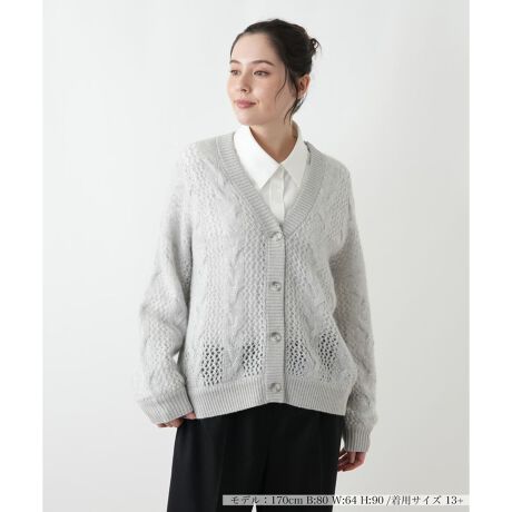 イタリア「GLOBAL LINE社」が手がけるブランド、「HAND」による、ざっくり編みが素朴なニットカーディガン。日本の老舗メーカーSHIMA SEIKI ITALIA出身の社長エンリコ氏の技術が詰まっています。ポリエステルを主体に、柔らかな肌触りの毛、アルパカ、ナイロンをブレンドした素材は、薄く軽く、着心地の良さが魅力。一部にスパンコール糸を使用し、さりげない輝きをプラスします。Vネックの前あきデザインにボタンがあしらわれ、上品な印象を与えます。秋のデイリースタイルから、きれいめカジュアルまで、様々なシーンで活躍する汎用性の高い一枚です。