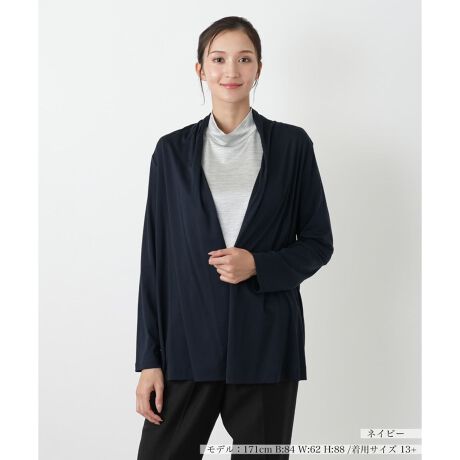 柔らかな肌触りと優しい風合いが魅力の、長袖カーディガン。コットン100%の上質な素材は、日常に心地よく溶け込み、暖かさを感じさせます。ご自宅で手洗いできるウォッシャブル仕様で、日常のお手入れも簡単。上品な無地デザインは、どんなインナーとも合わせやすく、着回し力も抜群です。同シリーズのハイネックカットソー(品番:1505218)と合わせてアンサンブルとしてもお召しいただけます。季節の変わり目の羽織りとしてはもちろん、冷房対策やちょっとしたお出かけにも重宝する、大人の女性に嬉しい一枚です。