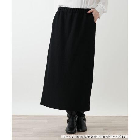 毛とナイロンをブレンドした、暖かく柔らかな肌触りの無地タイトスカート。裏地にはポリエステルを使用し、滑らかな穿き心地です。ウエストはゴム入りで、窮屈感なく快適にフィットします。ビジネスシーンはもちろん、普段使いまで、幅広いシーンで活躍する汎用性の高い一枚です。流行に左右されないデザインは、長くご愛用いただけるでしょう。