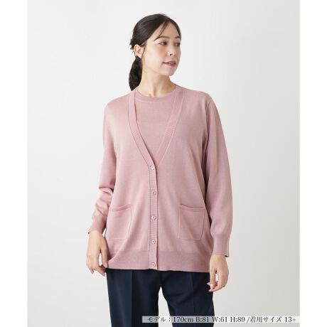 イタリアの光沢糸と毛をブレンドし、高度なプレーティング編みで丁寧に仕立てたカーディガン。光沢糸を表面に、毛を裏面に配することで、適度な光沢感とハリ感が特徴です。すっきりとしたノーカラーのVネックデザインが、どんなインナーにも合わせやすく、上品な装いへ導きます。軽く羽織るだけで、洗練されたスタイルをお楽しみいただけます。